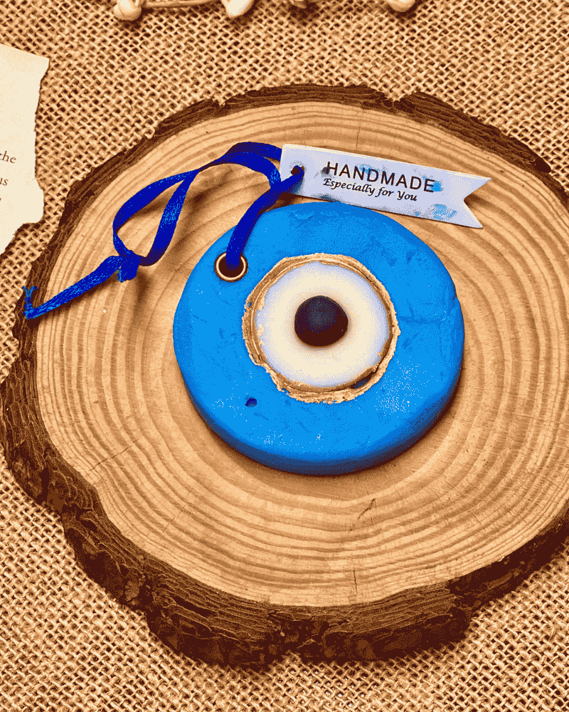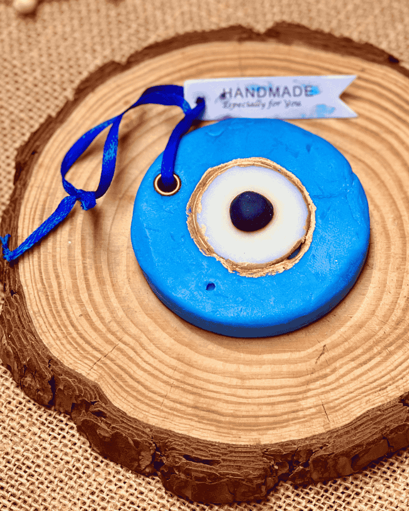 Evil Eye – Lemongrass Fragrance Charm: A vibrant, refreshing scent of lemongrass combined with the protective symbolism of the evil eye. Perfect for offices, hallways, or gifting as a spiritual keepsake. Perfect for wardrobes, cars, or cosy spaces. After a month, melt into a candle or keep as a charming wall décor piece